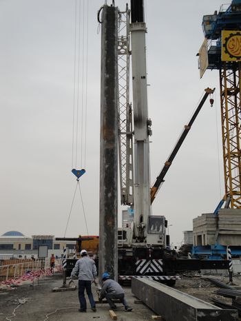 吊装之前,为确保首批四根长9、重达8吨的箱式钢柱顺利完成吊装,项目部召开了专题会议,就人员、机械、材料的安排及施工过程的安全、质量控制作了详细的部署。项目部将严格遵照科威特当地规范及合同要求,坚持高效严谨、精细务实的企业作风,强化安全意识,规范管理,文明施工,扎实推进项目建设,确保工程质量和建设工期。