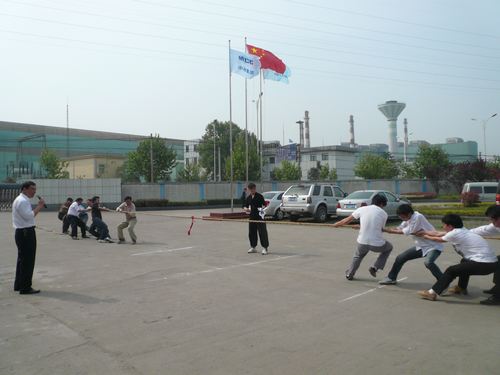 随着裁判的哨声一响,激动人心的拔河比赛开始了!双方队员紧紧抓牢手中绳索,齐心协力往后拉。公司领导也参与到拉拉队中,呐喊声、加油声、欢笑声此起彼伏。经过激烈角逐,机关团队获得了拔河比赛的第一名。接着,背球接力赛、盲人敲锣、定点投篮几项活动也同时紧锣密鼓地进行着,大家本着“友谊第一,比赛第二”精神,尽情享受让自己“动”起来的健身乐趣,热烈欢快的气氛贯穿始终。
