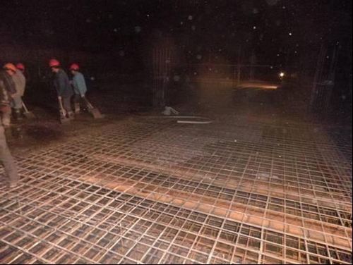 314深夜,市政工程技术公司张庄中心村保障性住房二期工程现场依然灯火通明,人头攒动,混凝土运输车往来穿梭,一片繁忙景象。
