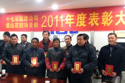 元月8日下午,十七冶城建工程技术公司超山花园项目部召开了2011年度表彰大会,为优秀的项目管理人员、协作单位和优秀外协务工者颁奖。