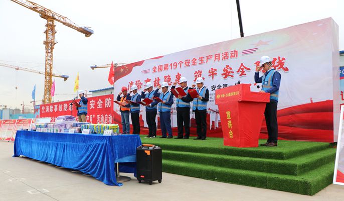 各项目部在活动仪式上宣贯公司、项目部安全月活动实施方案,解读安全月各阶段活动的计划及要求,并结合公司“安全环保管理提升年”和“安全生产月”活动作出动员部署,强调安全生产是每个人的神圣职责,全体员工要充分认识开展“安全生产月”活动的重大意义。