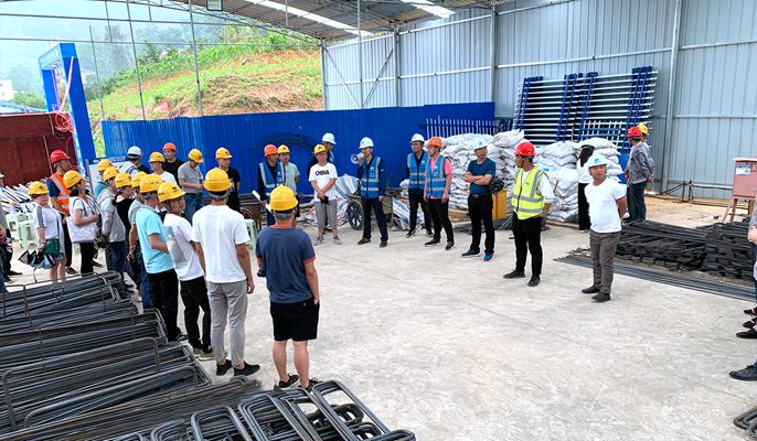 在观摩会现场,项目技术负责人向观摩团认真介绍了工程项目概括、项目施工组织、安全质量管理、文明施工等情况,并针对预制梁场中的智能张拉、智能压浆、自动喷淋养生等标准化工艺进行详细讲解和现场演示。观摩团仔细听取了讲解,实地察看项目预制梁场标准化建设情况,对项目预制梁场标准化建设给予高度评价,并就如何合理科学组织施工,加强质量、安全管理,打造梁场标准化等方面与项目部进行了经验交流。务川县交通运输局希望各施工单位以此次现场观摩和经验交流为契机,学习借鉴预制梁场标准化建设的成功做法和先进经验,积极促进项目以高质量高标准圆满完工,创建“安全、文明、优质”样板工程。