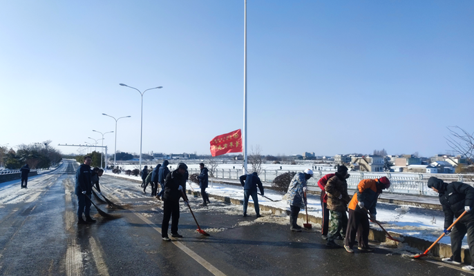 面对突如其来的降雪,郑蒲港当地交通受阻,当夜,郑蒲港项目部启动应急预案,采取有力措施,通过搬运草垫、盐等化雪物品等措施开展路面融雪工作,为安全出行提供保障。项目青年突击队自发组织扫雪,有的拿着扫帚,有的拿着铁锹……一片热火朝天欣欣向荣的景象。当听说有些路段需要支援,在一声号召下,青年突击队以忘我的精气神、无私的战斗力,坚持不懈地奋战在扫雪一线,经过一上午的扫雪除冰行动,尽管大家的鞋子湿透了、双手冻得红肿,但始终保持高昂的热情。