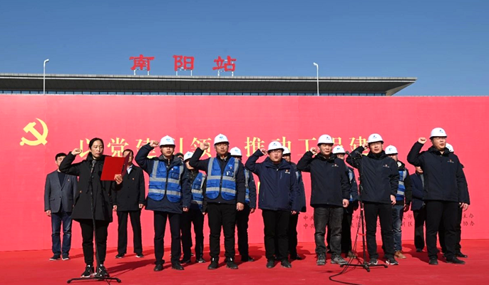 2月20日上午,“以党建为引领,推动工程建设再上新台阶”誓师动员大会在南阳市火车站广场项目举行,数百名建设者代表举拳宣誓,南阳火车站和鸭河快速通道重点项目建设春季施工大会战由此拉开序幕。