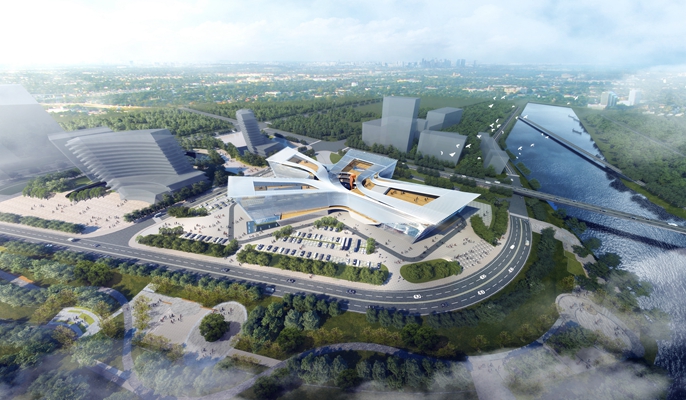 湘东滨河新区文化中心坐落在江西省萍乡市湘东区湘东滨河新区,位于昌盛大道南侧,长春路以东,用地面积45927平方米,总建筑面积38419.88平方米。建设内容包括文化馆、图书馆、综合馆、文化艺术中心,并将博物馆、美术馆、城市规划展览馆、科普馆、工人文化宫、傩文化展示、精神文明建设馆等功能融合在其中。各馆实现功能共享,建成后成为湘东的城市客厅。