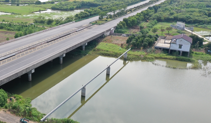 马鞍山博望区引长江水供水工程跨花津河支流段合龙