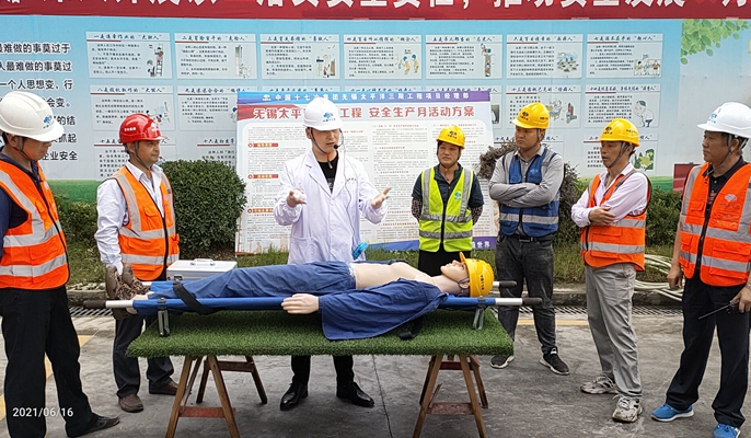 为避开中午的高温时段,项目部合理调整作业时间,各作业处根据工作实际,适当提前上午的工作时间和推迟下午的工作时间,最大限度地利用早晨和晚上的时间争分夺秒进行施工生产活动;其次项目部给一线作业人员“送清凉”,发放防暑降温物品如藿香正气口服液、人丹等,施工现场设置饮品供应点和临时药品存放初,落实防暑降温应急处理措施;项目部邀请当地医院医生到施工现场开展防暑降温演练活动,讲解中暑特征和高温危害知识及高温天气下的防护和中暑应急处理措施,增强自我紧急自救能力;项目部加强管理人员全方位、全天候、全过程安全巡视,重点对高处作业、施工用电、垂直运输机械的作业人员加强监管,严格落实“干两头、歇中间”的高温天气施工原则,全方位筑牢项目高温天气防暑降温和施工安全工作。