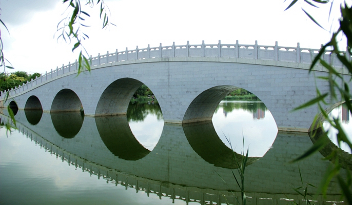 此次竣工的两座景观桥梁分别是四季河公园的三孔桥和七孔桥,结构形式均为钢筋混凝土半圆拱桥,三孔桥跨度24米,七孔桥跨度53米,主要功能为连接府前广场与人民公园。