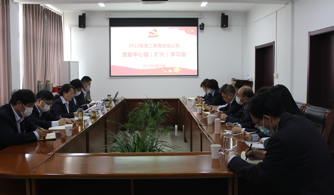 4月28日上午,达成公司召开党委中心组(扩大)学习会,专题学习研讨习近平总书记关于安全生产重要论述。公司领导班子成员、经理助理、副三总师、各部门负责人和各党支部书记参加了学习。