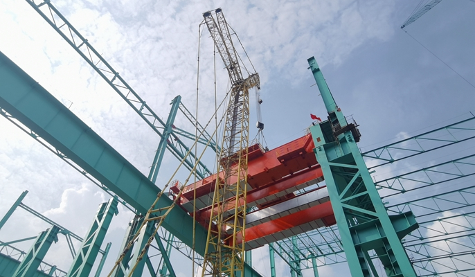 马钢新特钢项目首台行车吊装完成