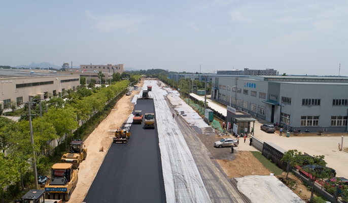 6月8日,中国十七冶集团路桥工程技术分公司承建的含山经济开发区承接长三角产业转移基地建设一期东区路网项目褒禅山路开始沥青下面层摊铺。