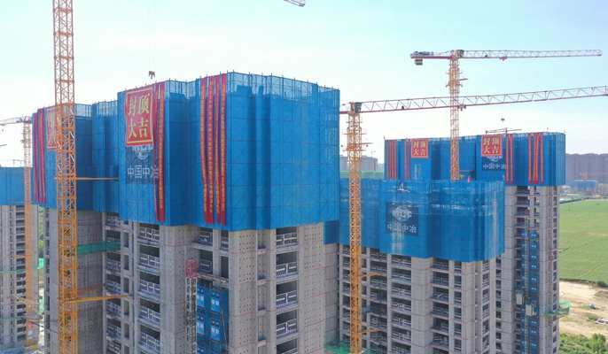 7月20日上午,由中国十七冶集团房屋分公司承建的保定ABO项目二期西贤台安置区首批楼顺利封顶,进入二次结构施工阶段。