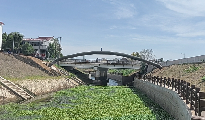 为了让博望全区喝上长江水,博望区建设引长江水供水工程。800毫米管道由南京江宁往马鞍山新市镇、丹阳镇及博望主城区进行辐射供水。项目建成后,将保持供水能力的适度超前,提高博望区供水能力,极大提高博望区居民生活水平,彻底解决居民饮用水问题。本次跨省界河管道采用圆弧架空跨越的方式,跨距35米,管道距离现状七仙街桥10米。跨省管道对接过程中,正值高温季节,项目部科学部署,“歇中间,抢两头”,为作业人员准备遮阳伞及盐汽水、仁丹、十滴水等防暑降温药品,谨防中暑现场发生,保证作业人员施工安全。项目工程技术质量管理人员全程跟踪,确保施工质量和安全。