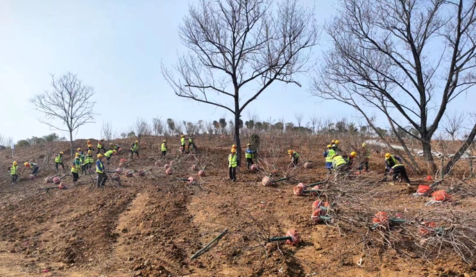 随着气温渐暖,项目部立足当下、精心部署,抢抓春季晴好天气,新进430棵苗木抢抓梅山山体绿化种植,全力以赴冲刺在梅雨时节之前完成山体绿化种植工作。同时,项目同步推进山体登山步道及灌溉用水管道建设,为苗木日常维护提供保障。截至目前,项目累计进场苗木6000余棵,梅山梅花种植工作基本完成,项目总体绿化种植完成50%,已形成山体公园雏形。