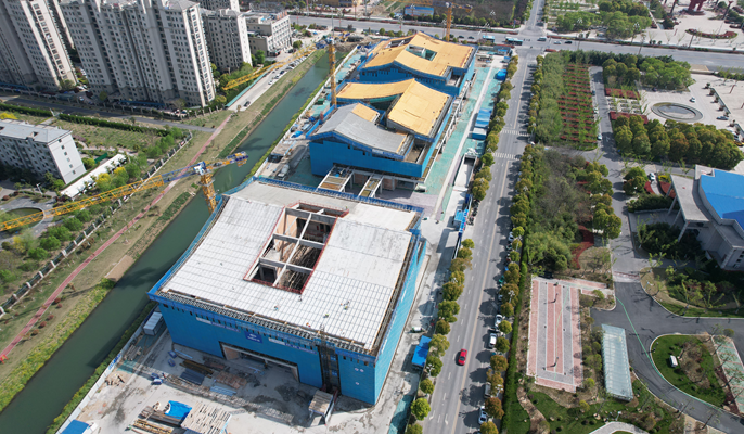 为顺利完成既定节点、稳步推进项目建设,二季度以来,项目团队提前谋划、精心组织,预先储备人机资源,强化多方沟通协调,确保节点有序跟进。以“基础管理提升三年行动”为抓手,加大施工图纸交底频次,强化质量检查整改力度,严抓技术质量,提升质量意识;抓紧抓牢抓好安全早会、班前教育、带班检查,为项目快速推进保驾护航。截至4月12日,项目博物馆、图书馆抹灰均完成至三层,电缆穿线完成至二层;文化馆屋面防水保护层施工完成,三层A区抹灰完成,中庭院玻璃雨棚钢骨架安装80%,屋面预埋件安装100%。