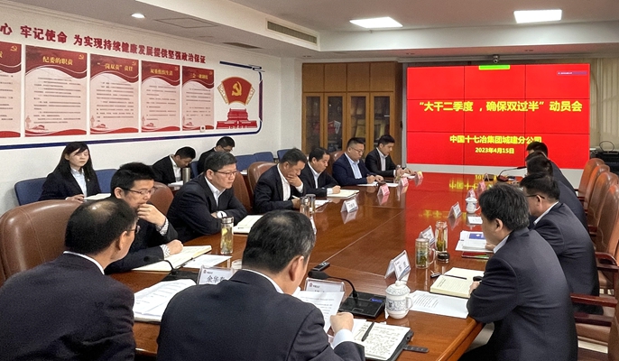 4月15日上午,中国十七冶城建分公司召开“大干二季度、确保双过半”动员工作会议。分公司领导班子、机关各职能部门负责人在主会场参会;西南分公司、各项目部班子成员在视频分会场参会。