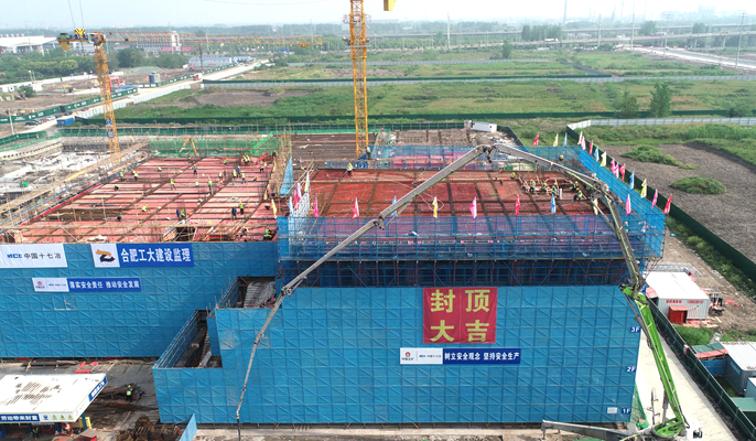 二季度以来,项目团队始终坚持“高标准、高效率、严要求”,科学编制施工方案,精心部署施工任务,合理调配人机资源,在确保安全质量的前提下,抢抓晴好天气,开启攻坚模式,持续掀起施工大干热潮,为此次封顶奠定了坚实基础。项目部将坚定“一创两最五强”奋斗目标,积极开展“基础管理提升三年行动”,强化项目基础管控,全力推进工程进度,踔厉奋发、勇毅前行,为芜湖江北新区教育事业贡献十七冶力量。