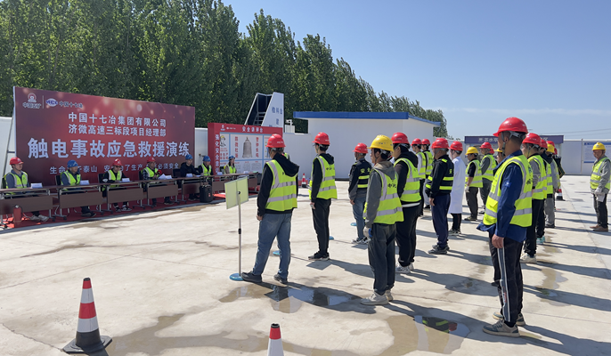 为增强项目全员安全意识与处置突发事件救援能力,5月11日,中国十七冶交通分公司山东济微高速三标项目组织开展触电事故应急救援演练。