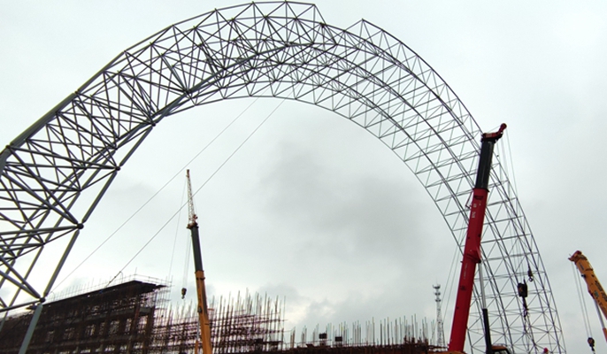 6月17日下午,中国十七冶冶金分公司承建的安徽宝镁项目白云石大棚网架首跨顺利吊装完成合拢。