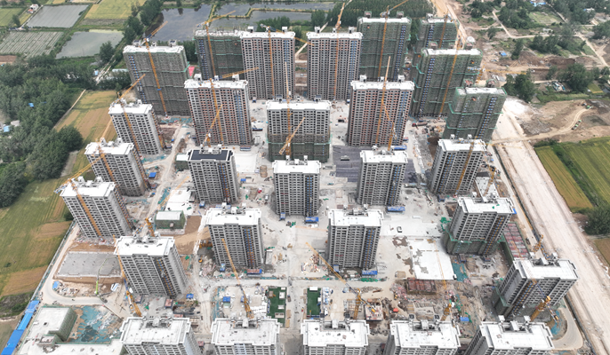项目位于安徽省蚌埠市五河县,共建设28栋17-26层高层住宅,配套建设幼儿园、农贸市场、物业管理用房、配电房、商业、门卫、出入口、围墙、广场、绿化与景观、室外附属工程等。此次最后封顶的28#住宅楼为剪力墙结构,地上26层,建筑高度78米,建筑面积9155.94平方米,居住总套数150户。本项目建成后可提供2694户安置住宅,将有效解决五河县民生问题、促进社会和谐发展,实现五河县人民的“安居梦”。