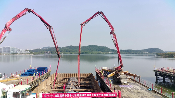 10月20日,中国十七冶长江黄石段生态导向开发EOD项目持续加强施工组织和资源投入,顺利完成磁湖绿色廊道磁湖大桥首个承台浇筑。