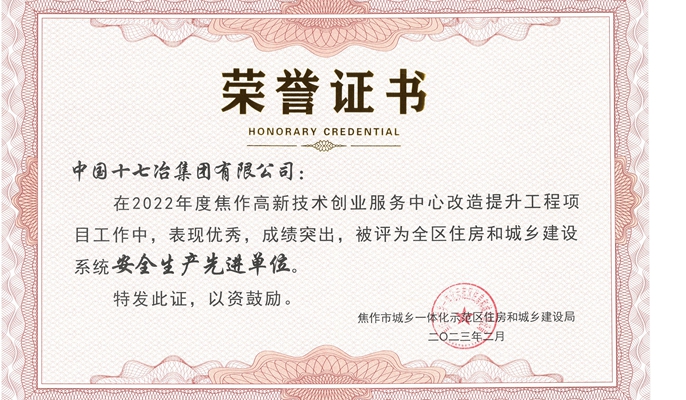 十七冶获评“焦作市示范区安全生产先进单位”