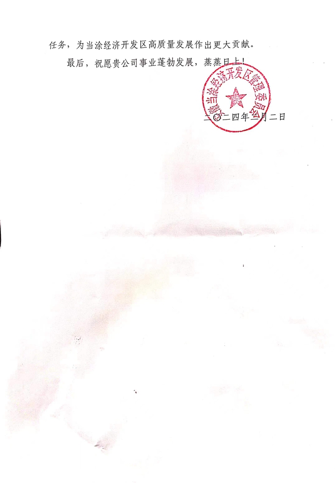 信中指出,2023年,当涂县城北小学项目勇担重任、精心部署,层层落实安全、环环紧扣质量,加大人员投入,扭转了施工被动局势;当涂经济开发区同润产业园一期项目于11月1日正式开工,截至目前主体结构已全部封顶,已进入砌筑收尾阶段;当涂经贸学校新校区建设项目,开工以来快速推进,保质保量完成各项节点目标。