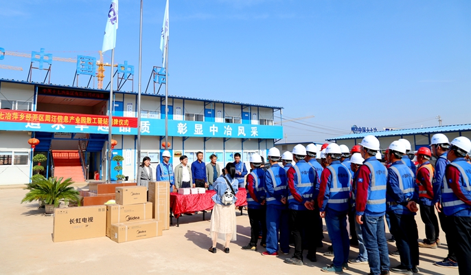 111日上午,中国十七冶集团萍乡经开区周江信息产业园项目在项目部举行“散工驿站” 揭牌仪式,萍乡经开区工会专职副主席曹占华、区党工委第二指导组组长刘红梅、新能源产业办主任李希斌等参加揭牌仪式,并观摩了“散工驿站”。