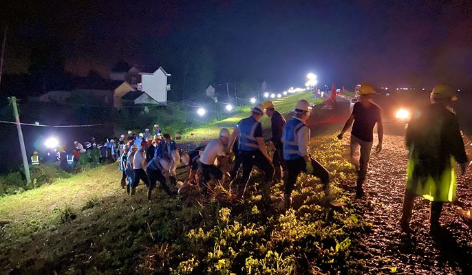 下午2点30分,抢险队伍抵达和县功桥镇抢险河堤,执行堤坝加固任务。房屋分公司、中冶置业副经理、安全总监陆正祥和何克林靠前指挥,充分发挥党员干部表率作用,带领现场抢险人员直面险情。现场人员团结协作、明确责任,16人一组,挖土、装袋、码放,不怕脏、不怕累,冒雨抢制沙袋、垒高防护层、加固堤坝。抢险突击队员共装运沙袋1200余个,加固河堤200多米,一直奋战到夜里9时30分,充分展示了央企党组织的先锋模范作用和青年突击队员冲锋陷阵的无畏精神,圆满完成上级政府交代的全部加固任务,筑牢防汛堤线,展现了十七冶人的责任和担当,赢得了和县政府及当地人民的一致好评。