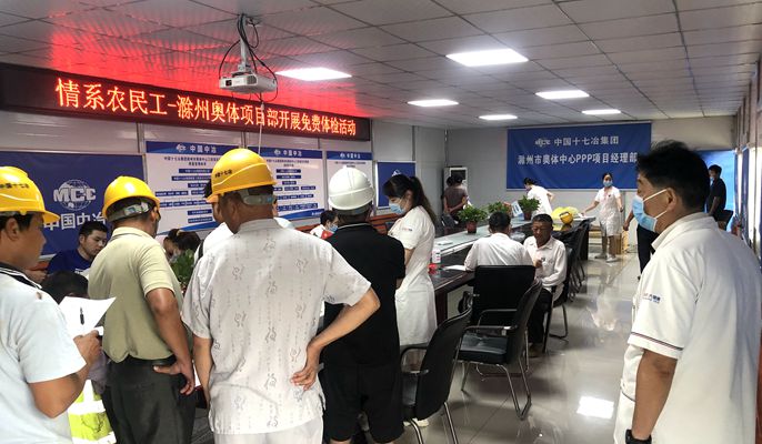 8月28日,中国十七冶集团城建分公司滁州市奥体中心项目部开展“情系农民工、体检送健康”活动。