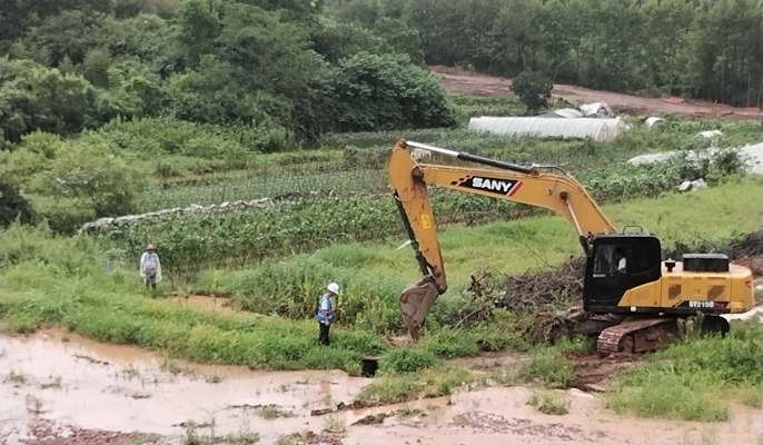 8月10至12日,黄山市连续三天大雨倾盆,加上施工现场所处地势较低,周边高地上的积水沿着地势向下流淌,周边的菜园形势也不容乐观。为了帮助菜农尽量减小损失,项目部调动现场挖掘机挖出了一条排水渠道,使得菜园积水能够顺利排出,尽最大努力减少对蔬菜成长的影响,帮助菜农抢收成熟的蔬菜瓜果,解决了菜农的燃眉之急。项目部将继续深化落实党史学习教育,为群众做更多实事,帮助群众排忧解难,担当社会责任。