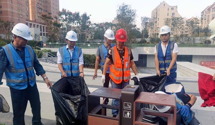 项目部树立“我为群众办实事”的理念,四名党员发挥先锋模范作用,带领其他员工,捡拾广场上散落的垃圾,沿着小路收集地面和草坪上的杂物,对广场上所有的垃圾桶进行一次集中清理。经过项目部员工们两个小时的努力,湛山广场的卫生得到了明显的改善。群众身边无小事,此次志愿清扫活动使得现场环境更加干净美丽,同时为周边群众创造方便。
