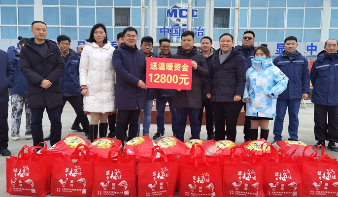 在新春佳节即将到来之际,1月28日上午,宿州市总工会党组成员周平,灵璧县总工会党组书记朱峰一行到中国十七冶集团城建分公司灵璧第二中学搬迁项目开展春节“送温暖”慰问活动,为项目部一线职工送来了慰问金和大米等慰问物资。