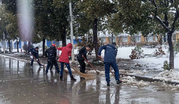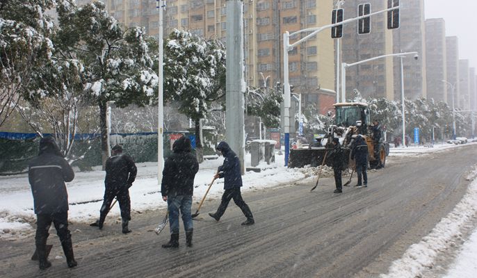 为保障市民、车辆的出行安全和交通畅通,两项目部第一时间快速反应,第一时间组织了数十人和数辆抛洒工业盐的车辆、铲车,冒着大雪对博望区海河路、永兴路等主干道路进行清除冰雪。与此同时,项目部组织对施工现场的施工用电、基坑安全及临边防护等进行安全检查,避免项目在雨雪灾害天气时发生意外事故,经过项目全体员工的不懈努力,保障了道路正常通行,为博望区人民开辟了一条洋溢着温情的通畅之路,用实际行动诠释了社会责任和担当,充分展现十七冶人风采。