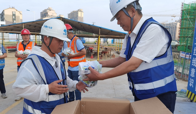 为保障施工一线作业人员的身体健康,确保作业人员全身心投入到安全生产工作中,推动高温季节防暑降温工作的落实,6月13日,中国十七冶集团交通工程技术分公司当涂滨江四期一组团(EPC总承包)项目组织开展“送清凉”活动。