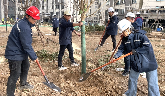 12日下午,新陆新居安置房项目以党建带动团建,组织项目全体党员、团员青年开展了“赓续发扬雷锋精神 护绿兴绿青年践行”主题植树活动。广大党员、团员青年在项目绿化区域分工协作,平整土地、清理余土,挖坑、植苗、浇水,栽得认真,干得卖力,整个活动现场都是一片热火朝天的劳动景象。大家一边植树,一边交流树木品种、生长周期、植物特性等情况,充分享受着劳动带来的乐趣和喜悦。