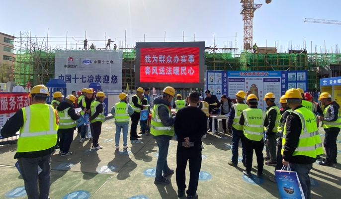 4月7日,中国十七冶建筑分公司金昌市金川区2#区棚户区改造项目邀请金昌市人社局、司法局、住建局及总工会工作人员到项目现场,开展“劳动权益保障、法律援助进工地”活动。